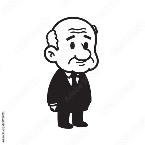 Old man with formal suit black and white vector illustration for classic portrait artwork design