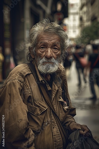 Old Man With White Beard Standing on Street