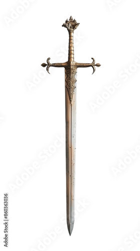 old, metal sword isolated on white, medieval steel weapon of knights