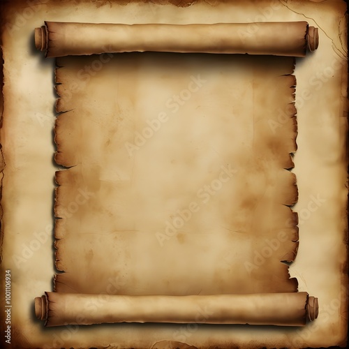 Old parchment paper frame with copy space Old paper on wooden background Old Parchment Scroll on Wooden Background, parchment , scroll , vintage , antique