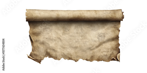 Old parchment paper roll isolated on transparent background, ai