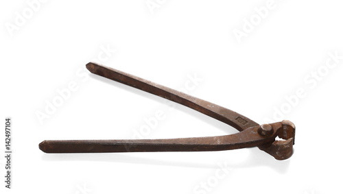 Old rusty metal pincers, isolated on white