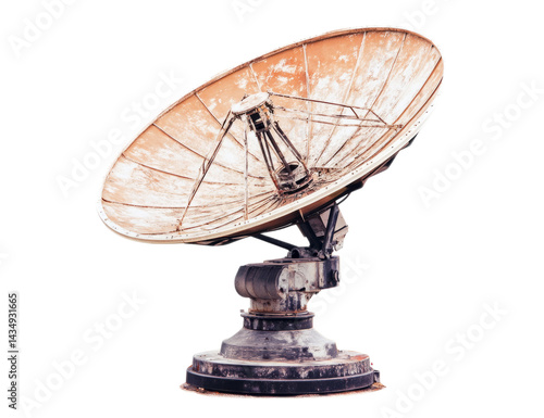 Old Satellite Dish Standing Alone on White Background