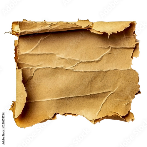 Old, torn, blank paper sheet isolated on a transparent background.