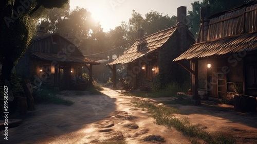 Old wooden houses. Eco tourism. Generative AI.