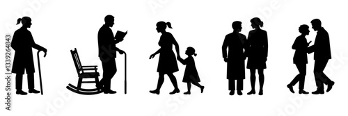 Older Adults & Senior Living Silhouette Icon Set