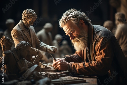 Older Man sculptor creates sculpture clay human model, Generate With Ai.