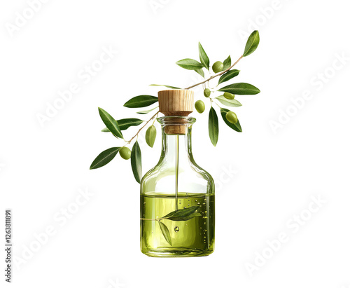 Olive Oil Bottle with Leaves on Transparent Background