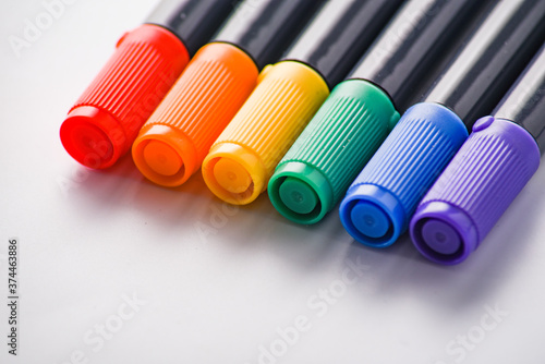 olor marker color pen set isolated on white background close up. lGBT concept