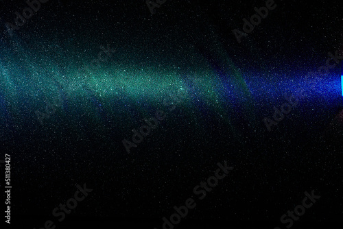 On a black grungy background in fine grain green and blue gradient beam of light