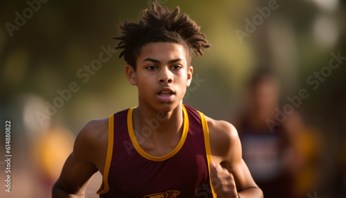 One determined young woman smiling, looking at camera after exercising generated by AI
