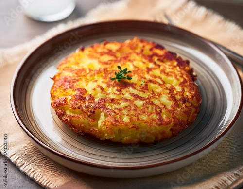 one golden brown hash brown patty on plate a tasty breakfast staple