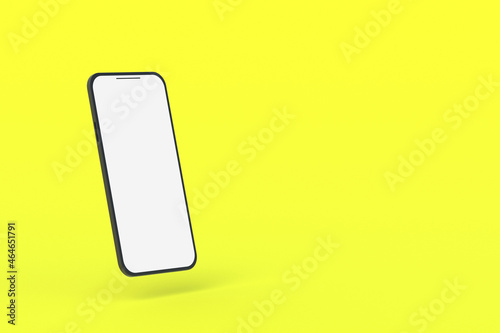 One smartphone with isolated white screen on yellow background. Copy space. 3d render