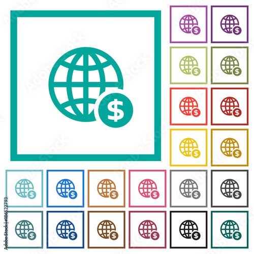 Online Dollar payment flat color icons with quadrant frames