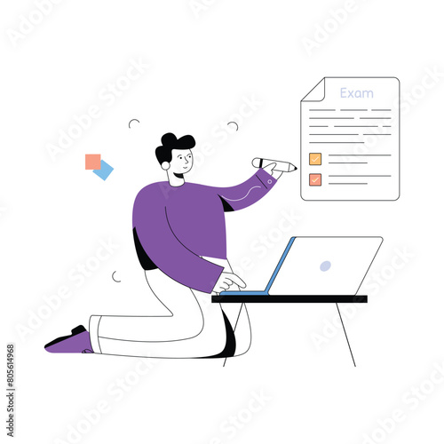 Online Exam, Filling form, online form filling, flat vector illustration design,
