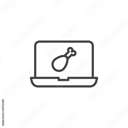 Online food delivery screen line icon. linear style sign for mobile concept and web design. Laptop monitor with chicken leg outline vector icon. Symbol logo illustration. Pixel perfect vector graphics