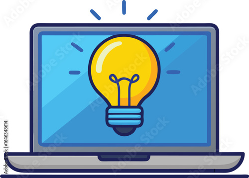 Online idea with light bulb on laptop screen isolated on white background for business concept