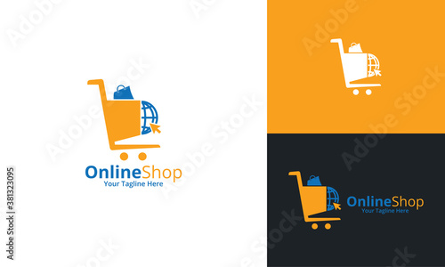 Online Shop Logo designs Template. Illustration vector graphic of shop bag and shopping cart combination logo design concept. Perfect for Ecommerce,sale, discount or store web element. Company emblem.