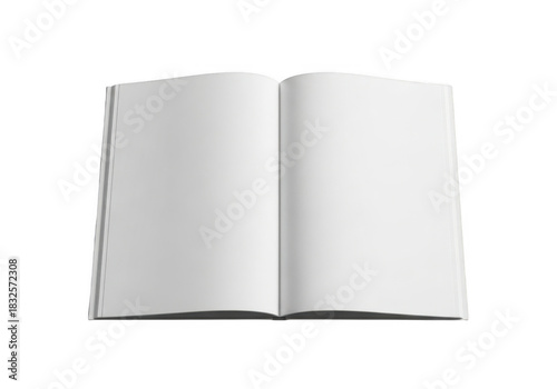 Open blank book with clean white pages isolated on transparent background