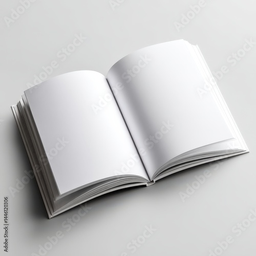 Open blank book with empty pages mockup template on white background