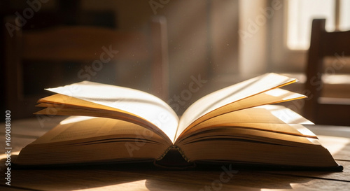 Open Book Bathed in Sunlight: A Study in Light and Shadow