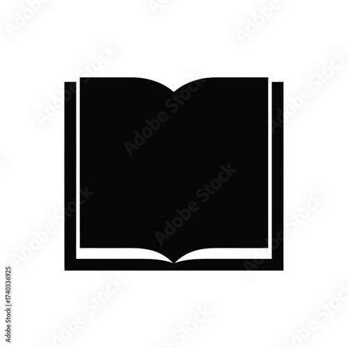 Open book icon, black silhouette on white background, symbolizing reading and knowledge.