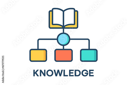 Open book symbolizing knowledge with colorful branches and icons knowledge flow chart