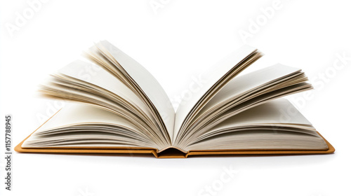 Open book with blank pages isolated on white background.