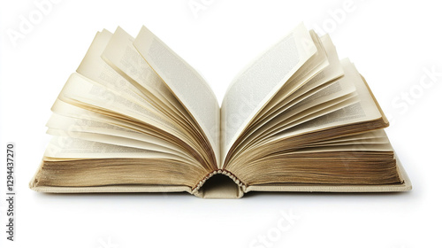 Open book with blank pages on white background
