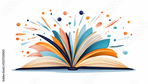 Open book with colorful pages, bursting with creativity