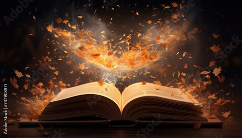 open book with mystic bright light on white