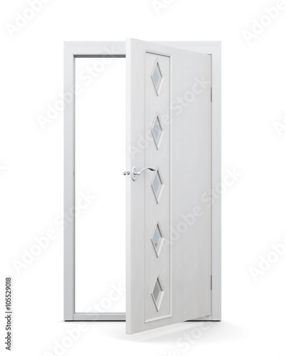 Open door with glass inserts isolated on white background. 3d rendering.