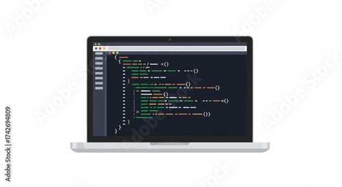 Open Laptop Displaying Lines of Code on a Dark Screen.