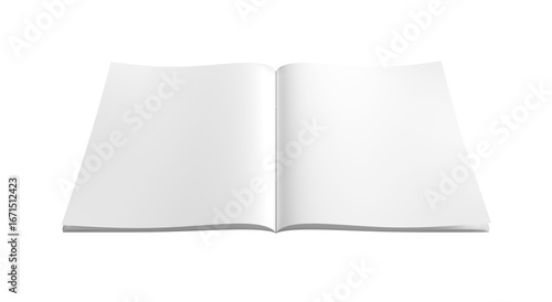 Open magazine isolated on transparent background. Cut out blank brochure mockup 3D rendering
