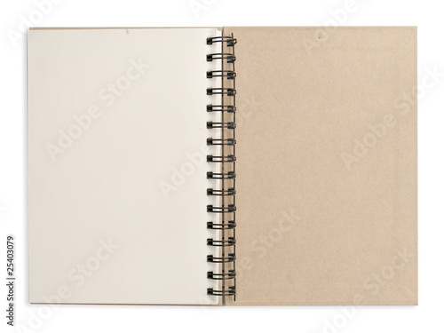 open white note book .