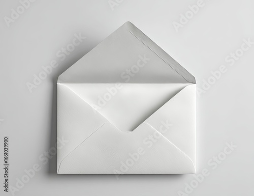 Opened white envelope on a light gray surface