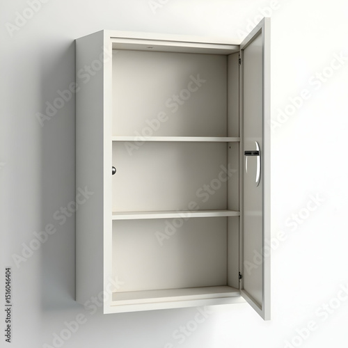 Opening Wall Cabinet with Shelves Displayed on White Background