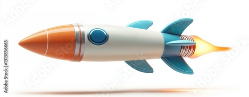 Orange and Blue Cartoon Rocket Launching Against White Background