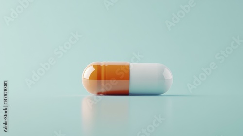 Orange and White Pill Capsule Isolated on Blue Background