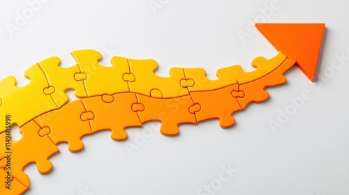Orange arrow formed by connected jigsaw puzzle pieces, symbolizing growth and progress.