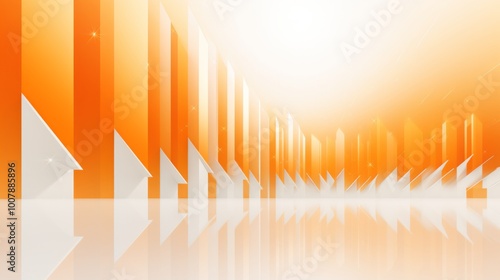 Orange arrows moving forward in a vector illustration with a white and orange color theme symbolize progress and direction