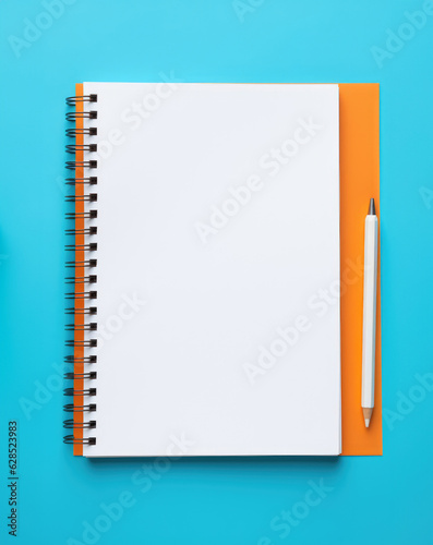 Orange blue flat lay office concept, notebook with copy space for message. Pencils and school supplies, it's time to go back to school.