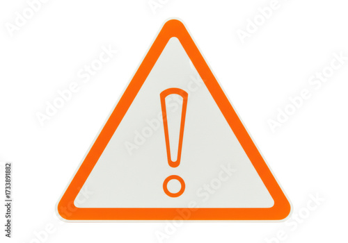 Orange exclamation mark in triangle isolated on transparent background, warning sign for attention and safety