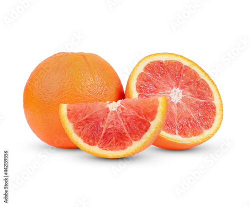 Orange fruits with slice isolated on white background