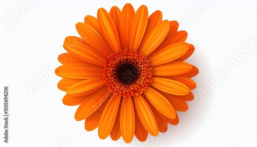 Orange Gerbera Flower Close Up On White Background