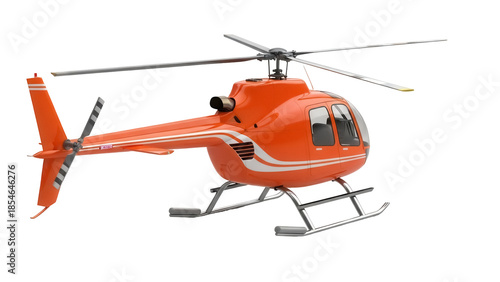 Orange helicopter PNG isolated on transparent background, light aircraft for transportation and travel, air vehicle for rescue and tourism