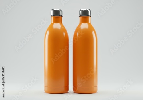Orange insulated stainless steel water bottles with metallic silver caps photographed in upright position on neutral background