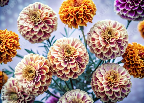 Orange Marigold Flowers Seamless Pattern on Purple Background for Vibrant Decor