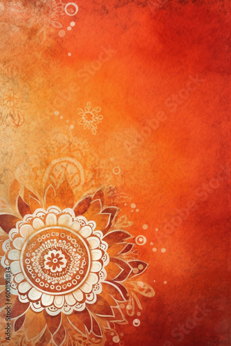 orange Pantone color background paper texture Rangoli pattern painting. AI generative