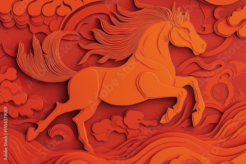 Orange Papercut Horse Chinese New Year 2026 Celebration Symbol